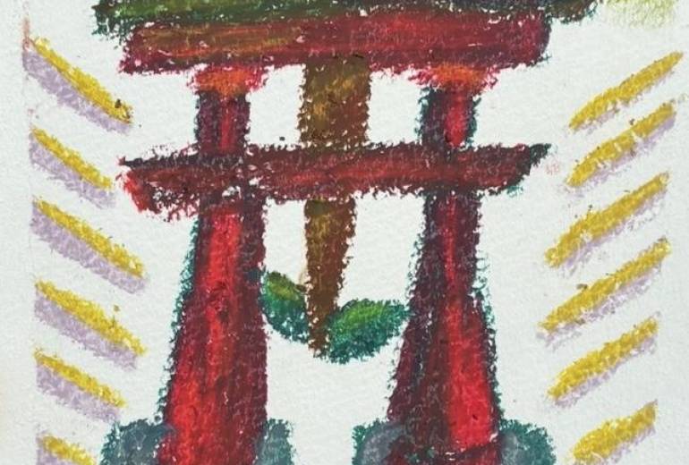 初作品です。わたしは、日が沈んで夜になると、自分が消えて無くなってしまうような感覚に襲われるときがあります。この作品はそれを表現したくて描きました。