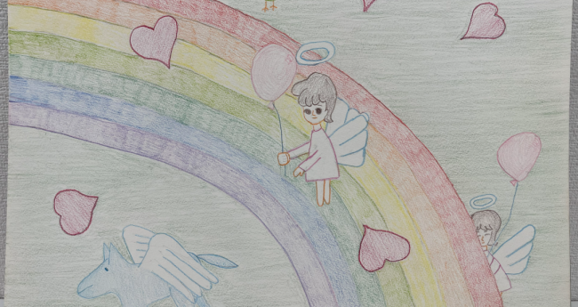 非現実,空,青,動物,想像上の生き物,子供,明るい,かわいい,わくわく