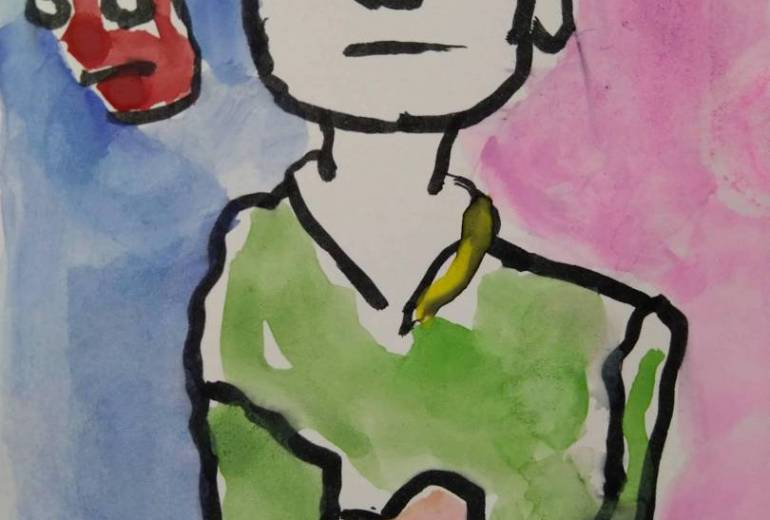 毎日ハガキに自由に思いつくままに絵を描いています