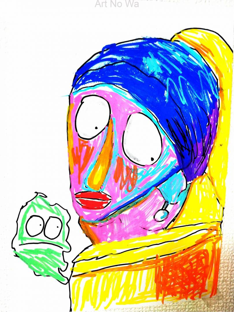 真珠の耳飾りの少女を自分の絵柄で描きました