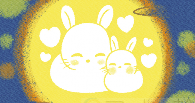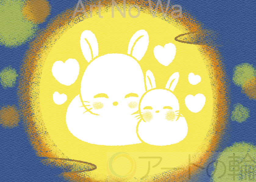 月の中で親子の優しい温もりでいっぱいになっている様子です。