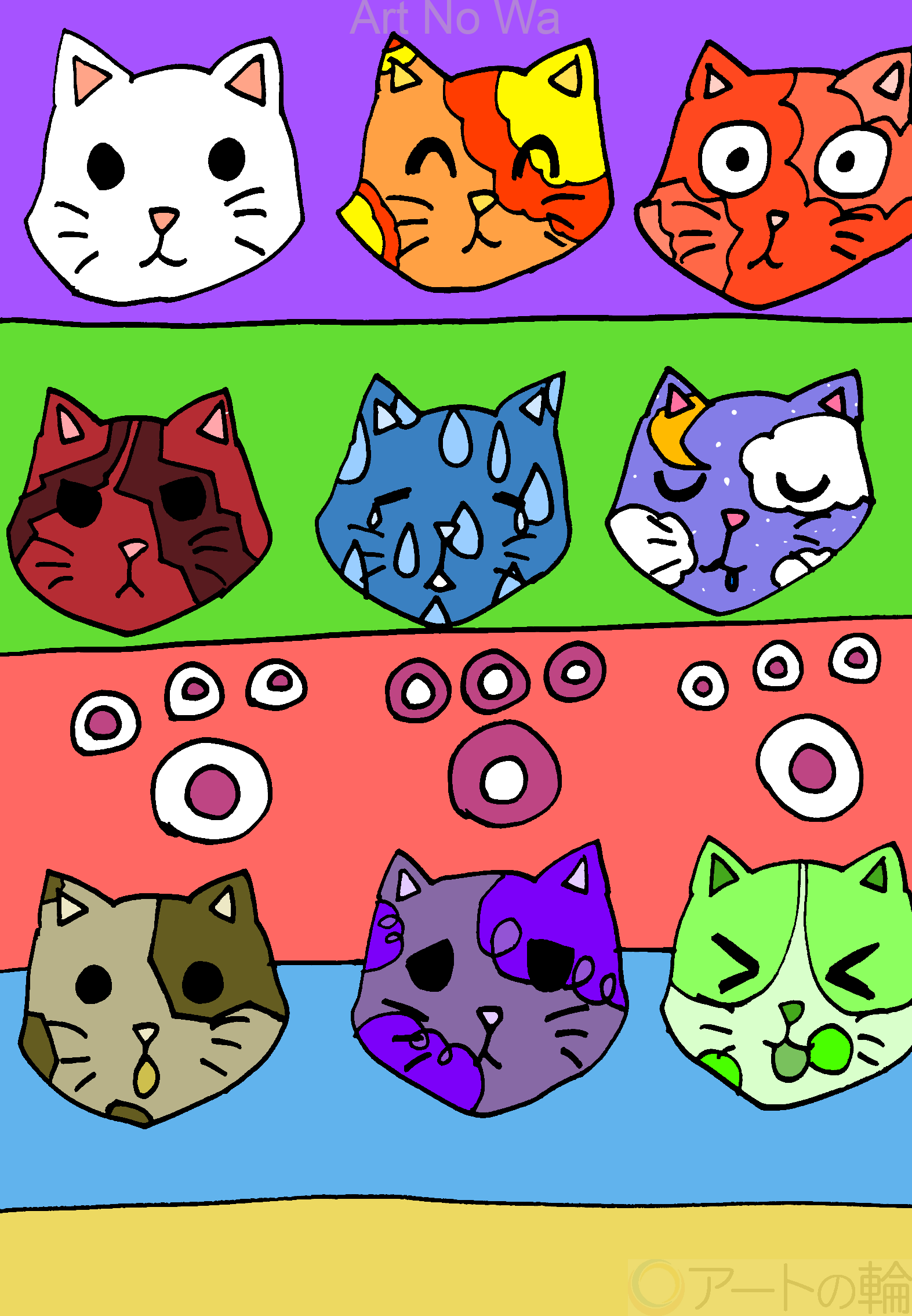 色んな表情に合わせて色が変わる猫を描いてみました。