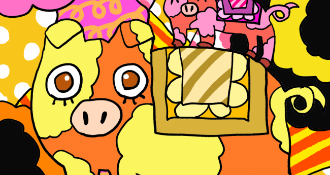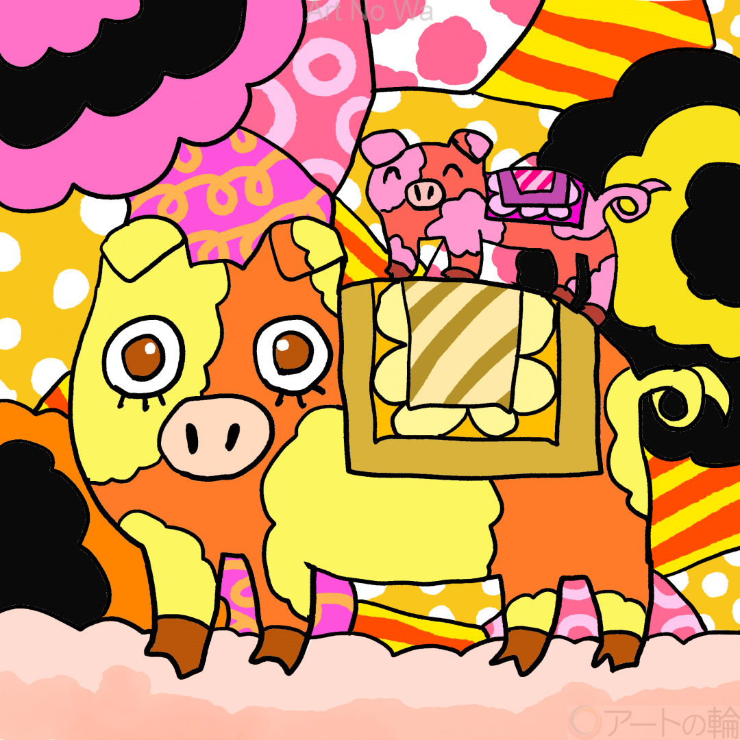ぽかぽかと温まるような色で仲良しな親子ぶたを描いてみました。