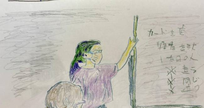 毎月参加している埼玉県春日部失語症友の会で、毎月絵をかいていますが、今回は入院中のため、写真を送って頂いて絵をかきました。