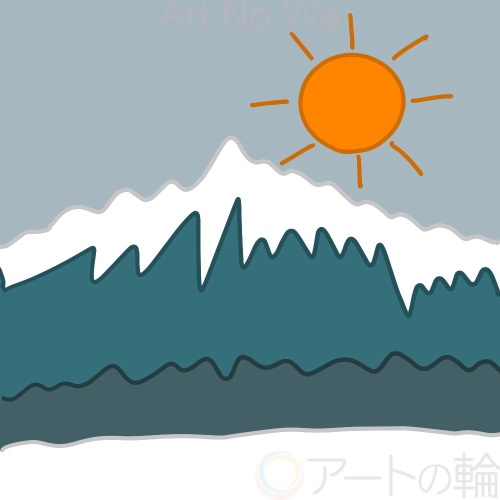 現実,屋外,自然,山,空,冬,1月,2月,12月,オレンジ,緑,水色,白,風景,明るい