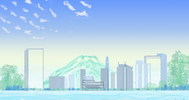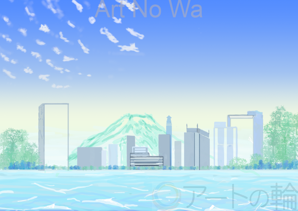 非現実,屋外,自然,海,空,過去,現在,未来,春,秋,4月,5月,6月,9月,10月,11月,黄色,緑,水色,青,紫,白,黒,風景,建造物,明るい,たのしい,かわいい,わくわく,どきどき,びっくり