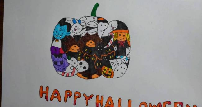 非現実,ハロウィン,オレンジ,黒,明るい,たのしい,わくわく,ホラー,2D