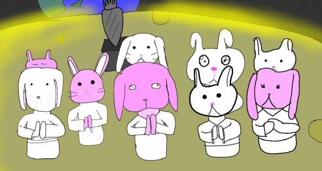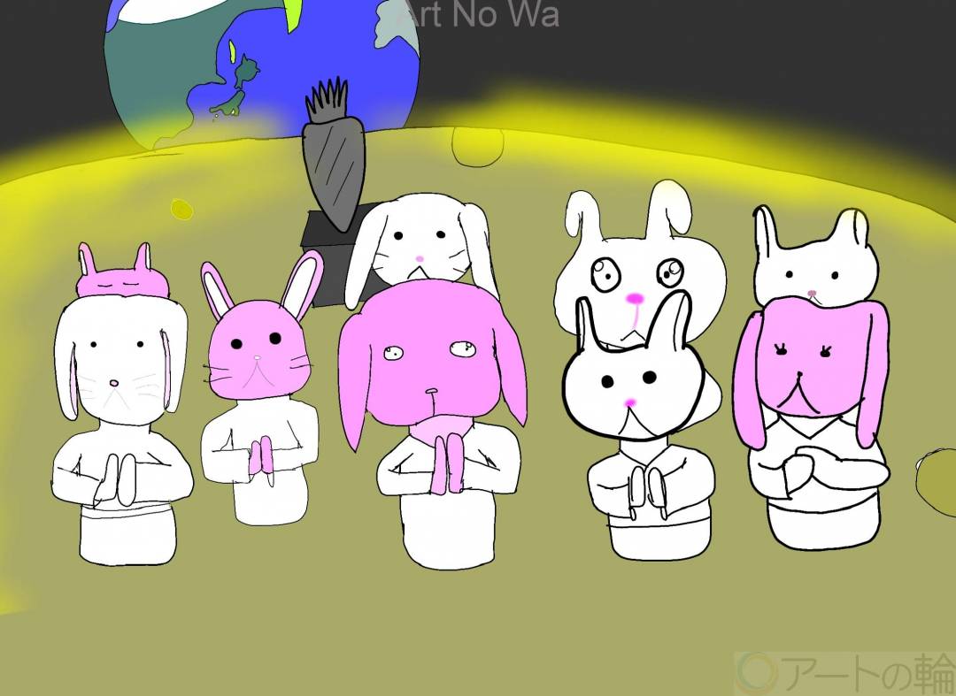 月のうさぎの人たちが何か祈りを捧げている地球の平和を祈ってるといいね