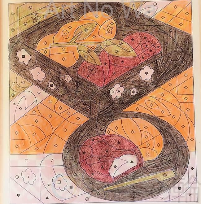 雑誌の塗り絵・弁当を丁寧に塗りました。