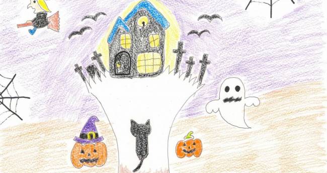 非現実,屋外,ハロウィン,10月,オレンジ,黄色,紫,動物,植物,建造物,びっくり,ホラー