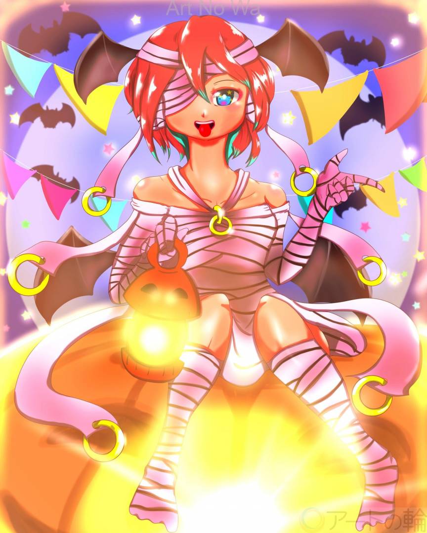 屋外,ハロウィン,季節の行事,10月,赤,オレンジ,黄色,紫,白,人物,想像上の生き物,風景,女性,明るい,たのしい,かわいい,びっくり,ホラー,2D