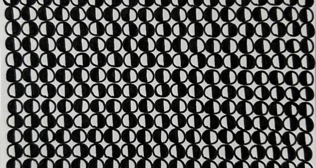 近くで見ると丸の羅列、離して見るとRNAのような畝り模様が浮かび上がります。