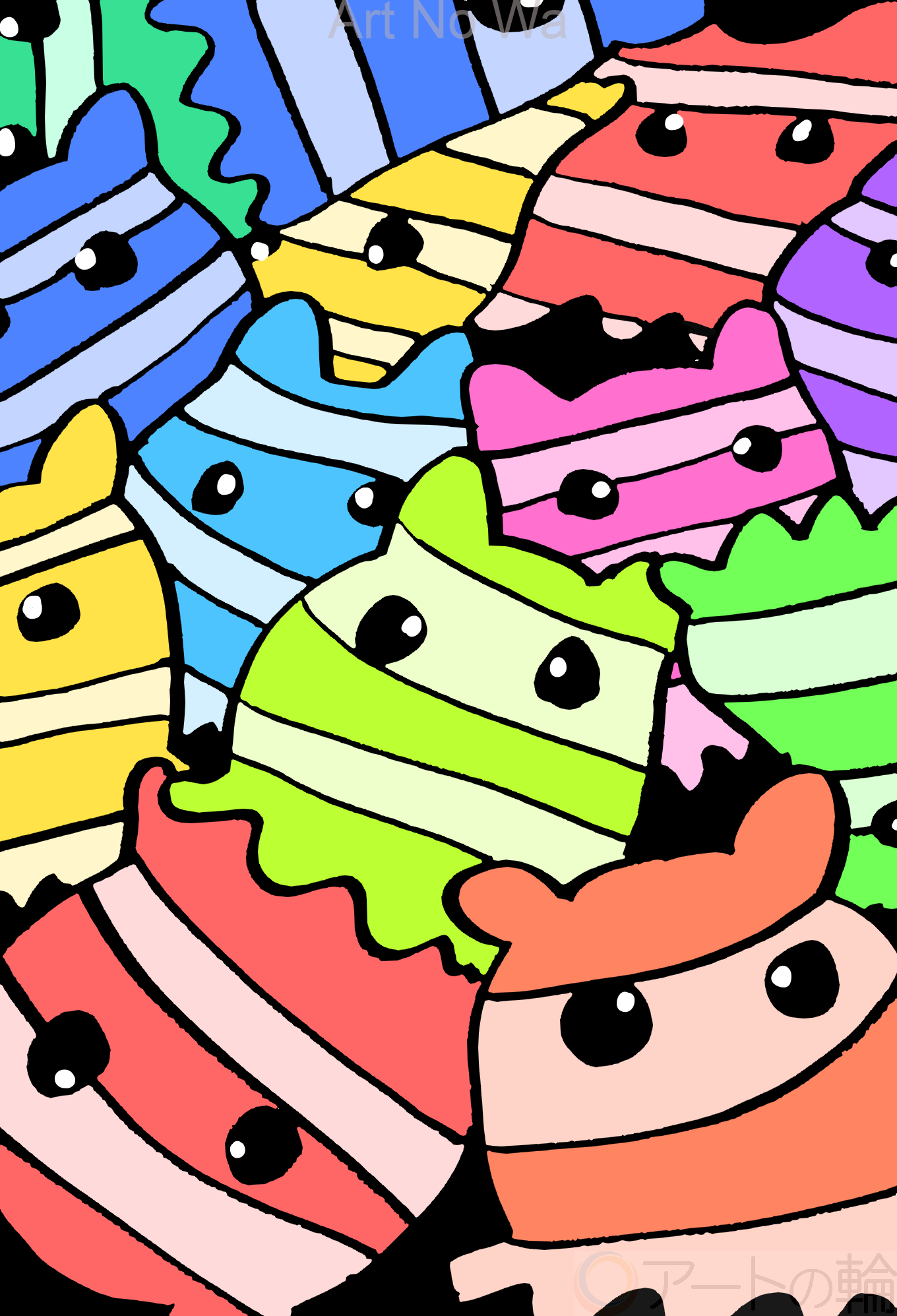 色んな色の沢山のメンダコを描いてみました。