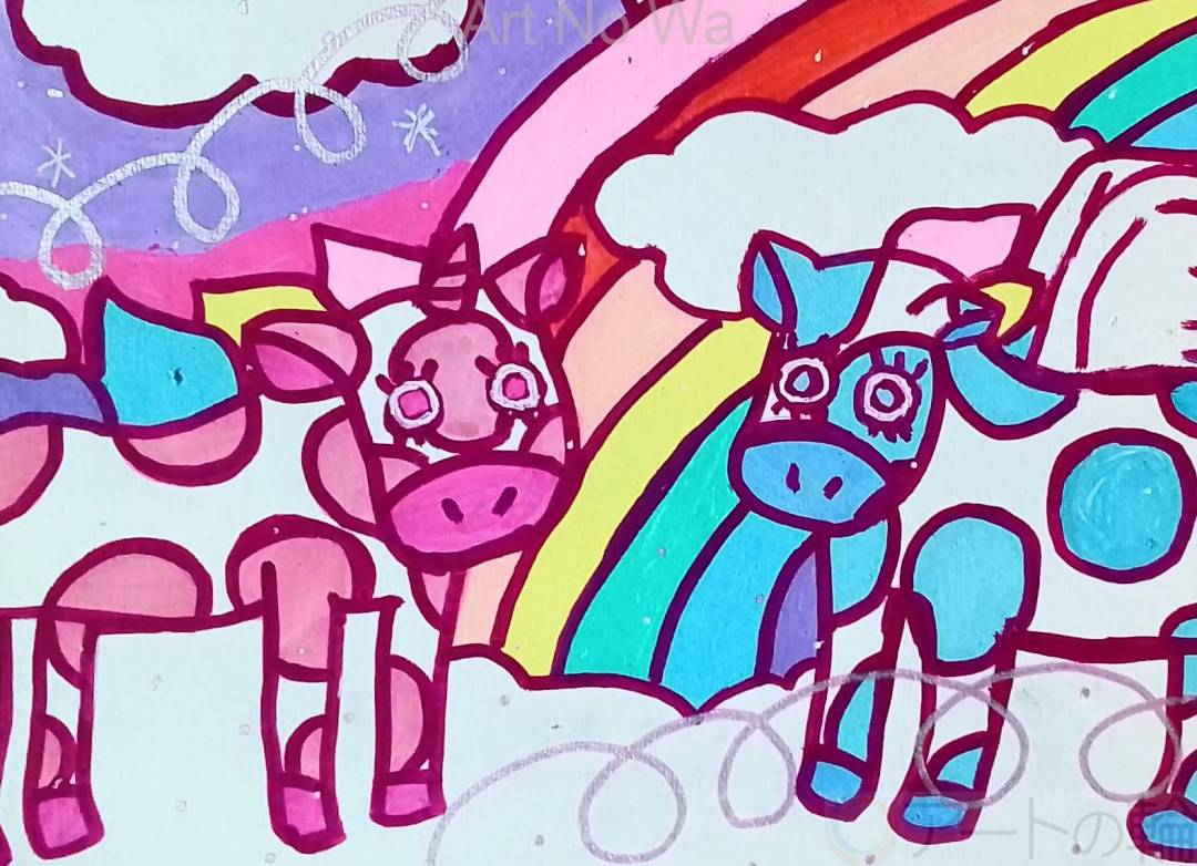 水玉模様が可愛いユニコーンとペガサスを描いてみました。