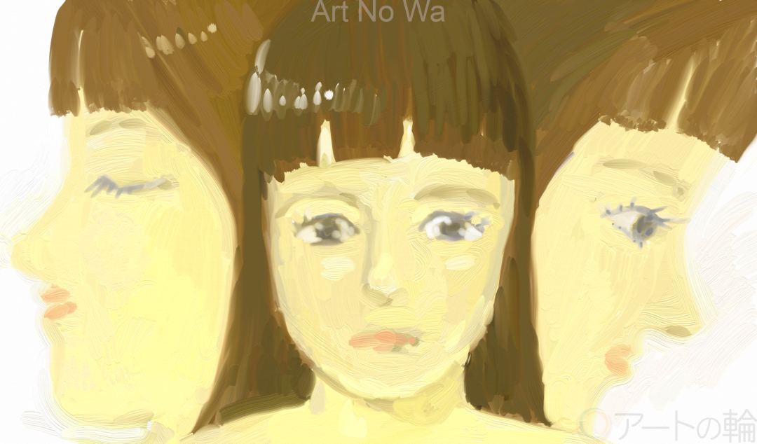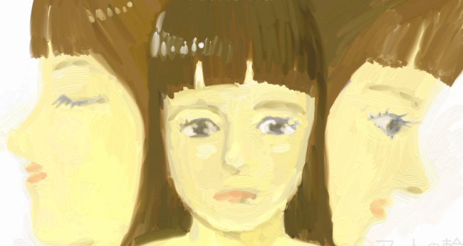 女性の表情を、少しタッチを付けて三面にして描いてみました。