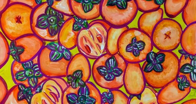 秋,オレンジ,黄色,緑,紫,植物,明るい,たのしい,わくわく