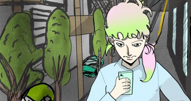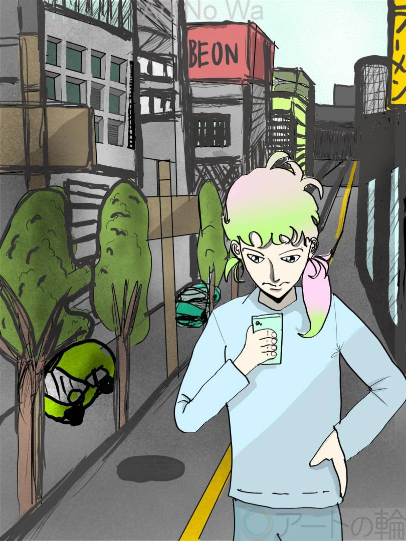 スマホを見る男の人を描きました