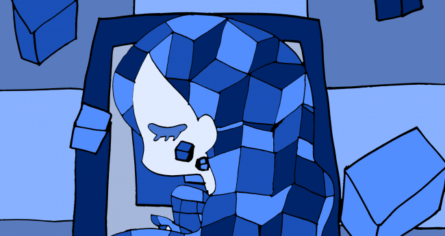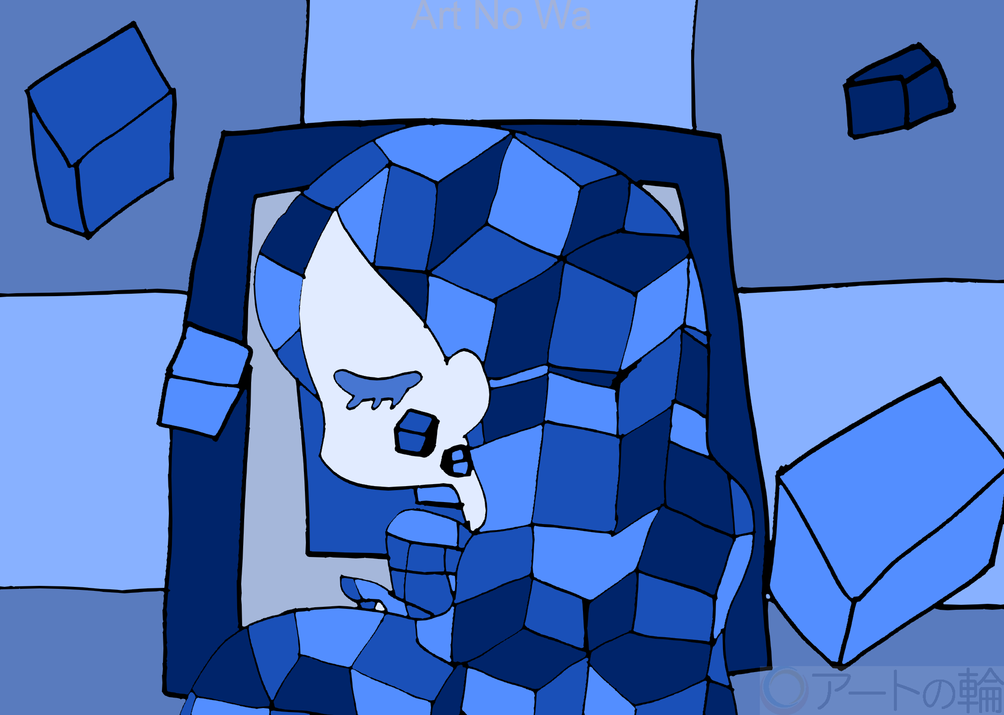 四角形のように真っ直ぐな思いを瞑想している女性を描いてみました。