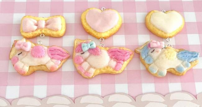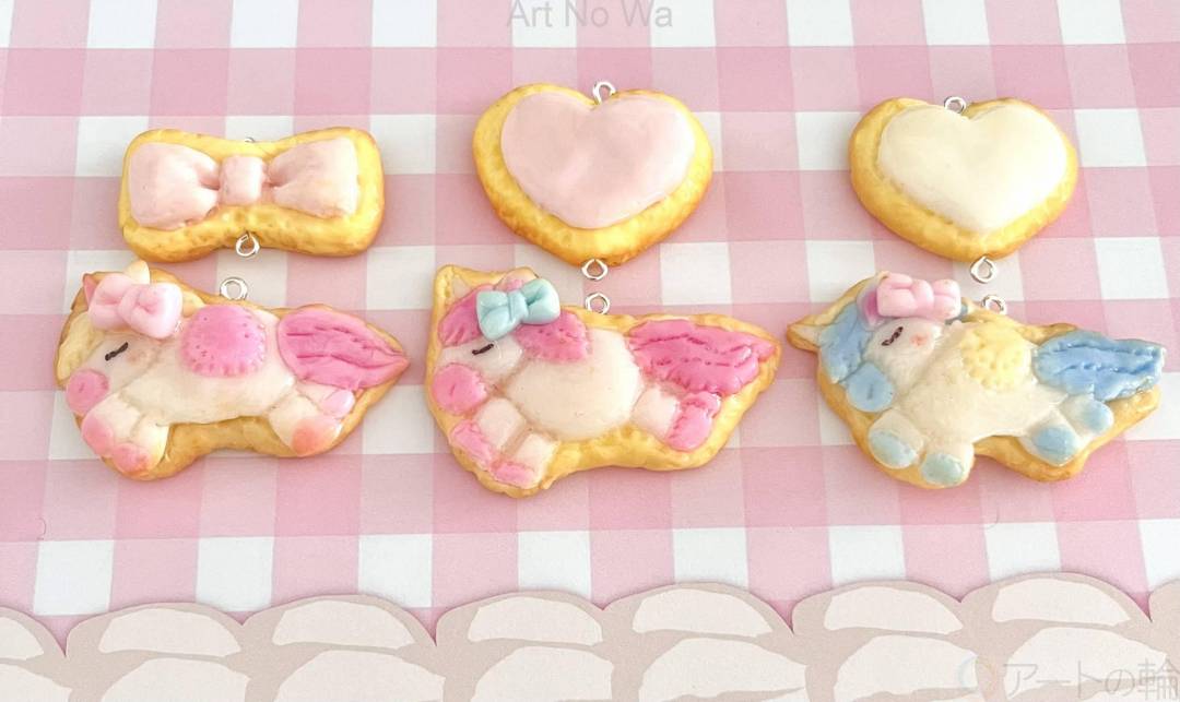 作業所で作った樹脂粘土のアイシングクッキーです。連結させてストラップにできます