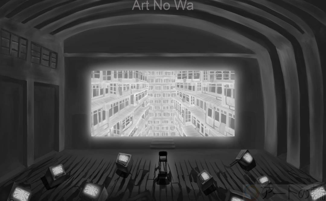 廃墟となった体育館です。背景を描くのはあまり好きじゃないのですが得意のようです。好きと得意は違うのですな。