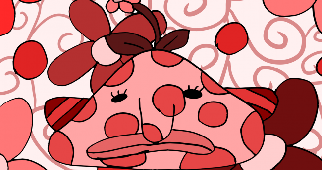 頭にお花が生えているニュウドウカジカがまったりとゆったりとくつろいでいる様子を描いてみました。