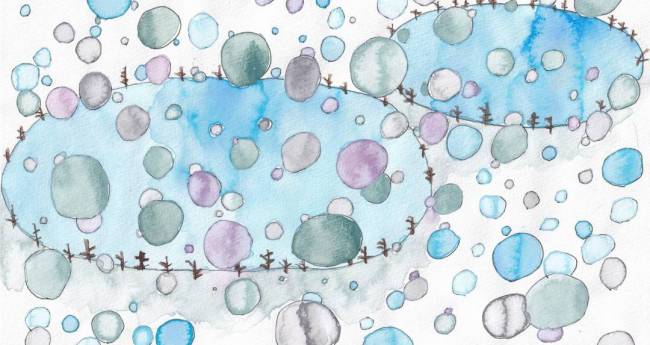 ピーンと張った氷のような空気感の中にまあるいかわいい雪が降る冬