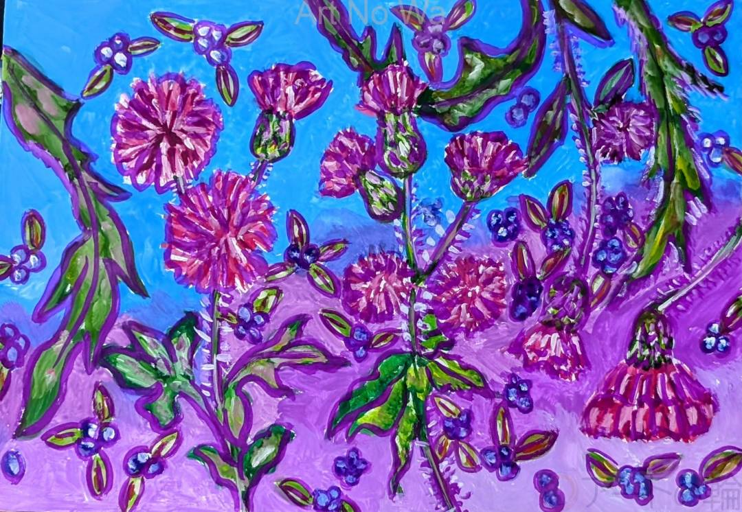小学3年生の頃学校の先生が読書感想画のコンクールをすすめて参加したら入賞したきっかけで母のすすめもあり絵を描くのが好きになりました。特に花が好きで紙に大好きな花…