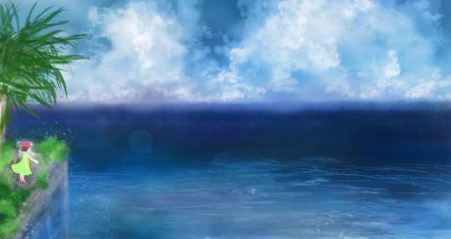以前制作した「真夏の海」を描き直しました。人がいなくなって水没してしまった建物の屋上に佇む女性です。環境問題を取り扱ったニュースを見て考えた事を表現しました。