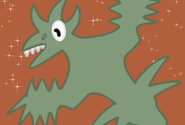 非現実,屋外,自然,空,秋,11月,オレンジ,紫,白,黒,動物,植物,想像上の生き物,明るい,たのしい,かわいい,わくわく