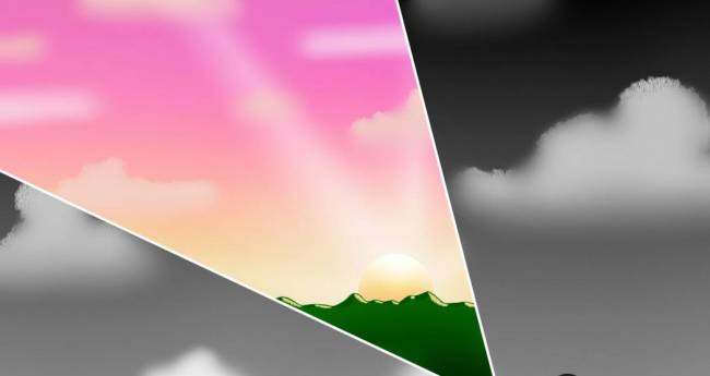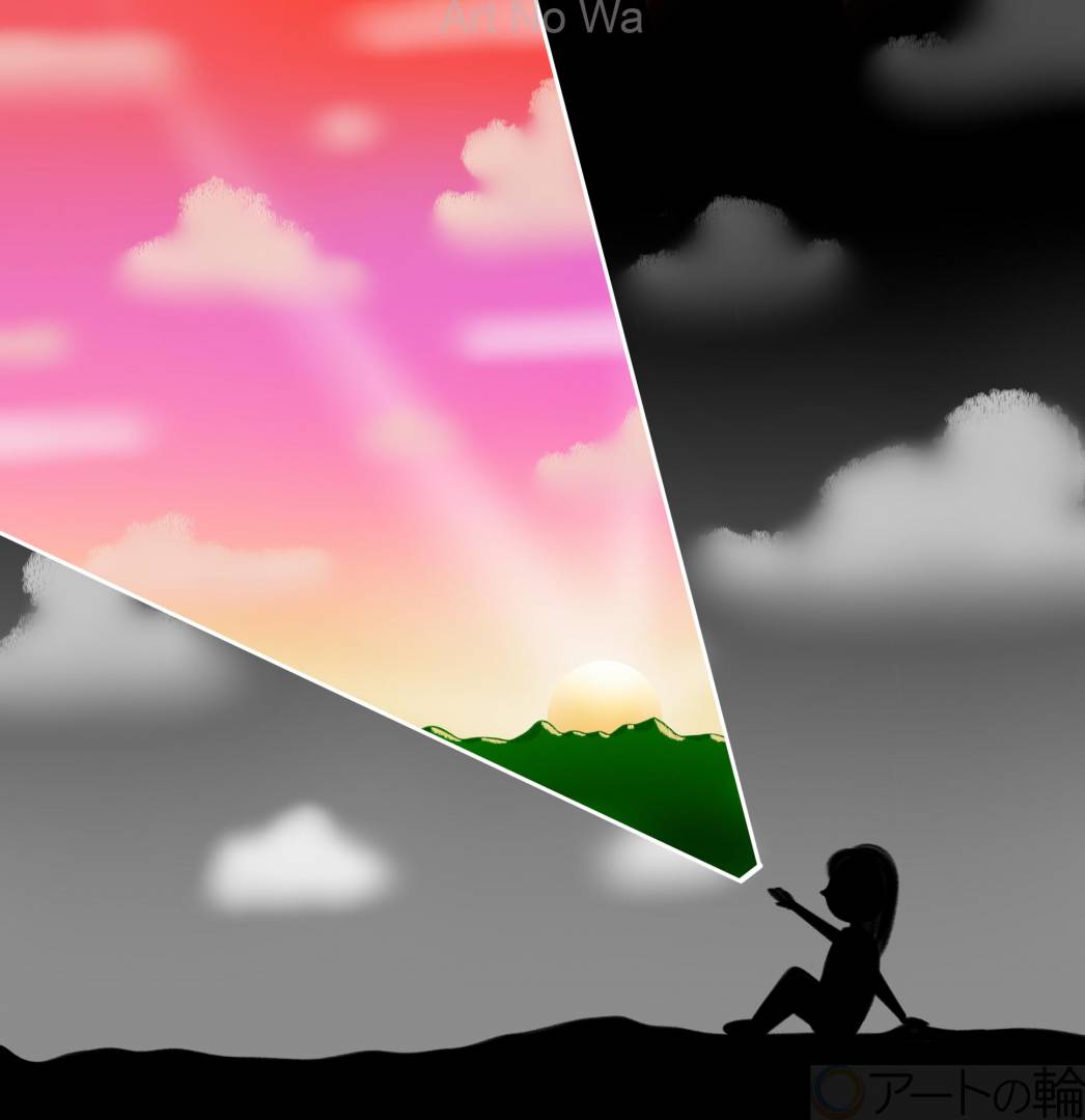 非現実,屋外,自然,空,赤,オレンジ,白,黒,人物,風景,女性,暗い