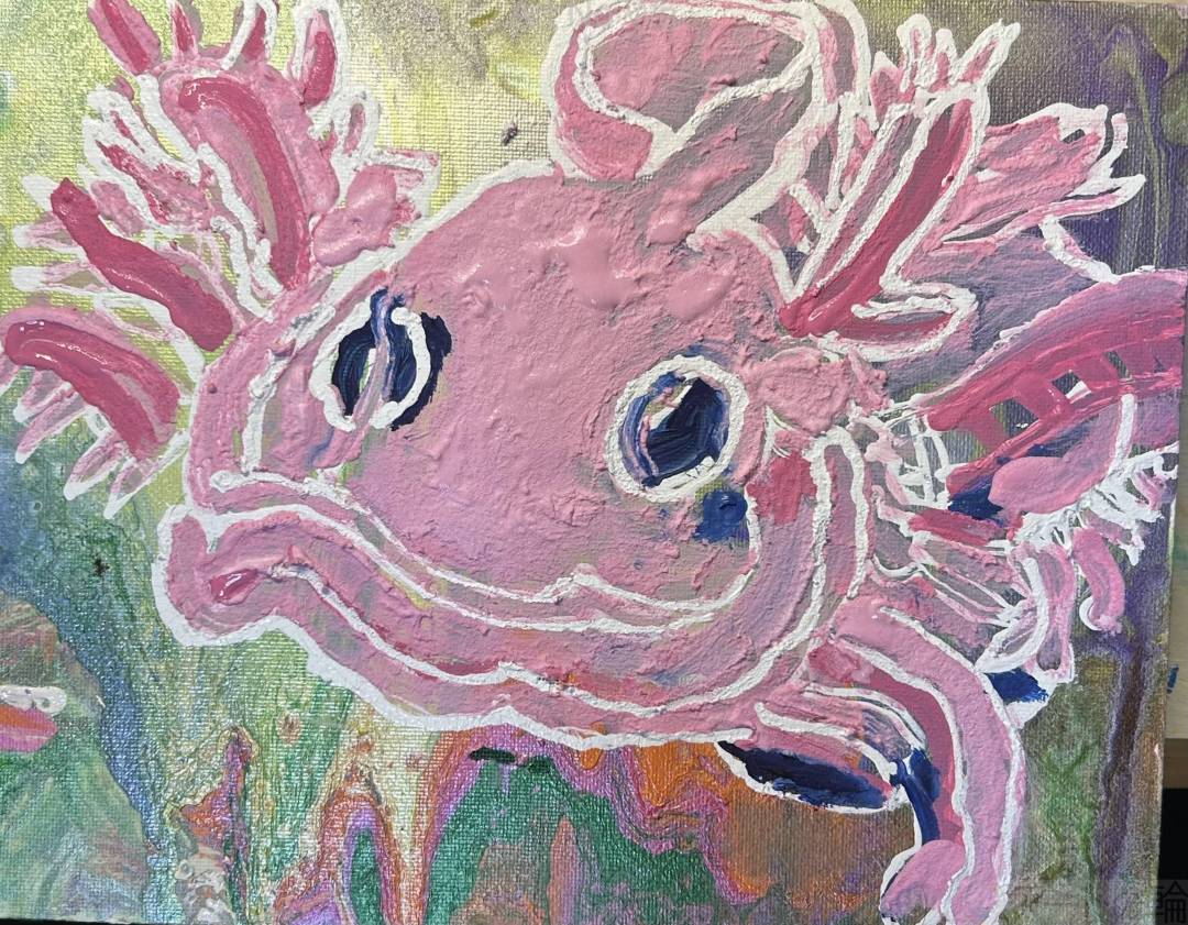 額縁屋さんのアイドルのウーパールーパーを描きました。お店のアイドルです。