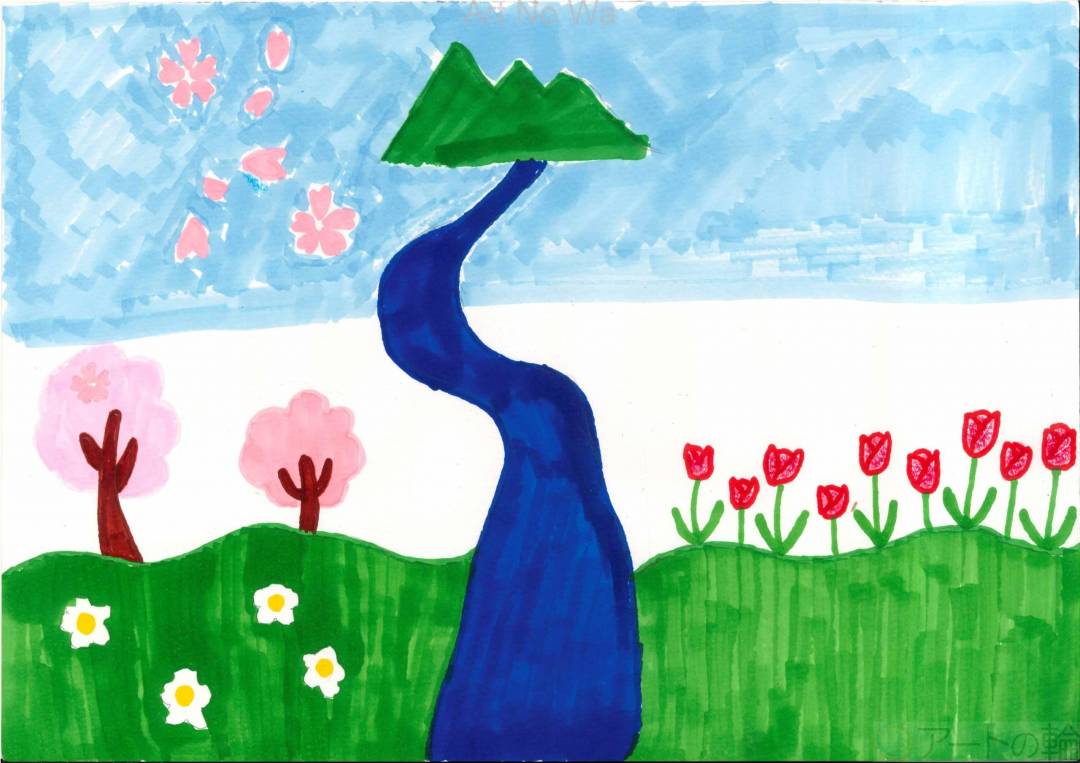 春は桜のイメージがあり、桜とチューリップで花びらが舞ってるように描いてみました