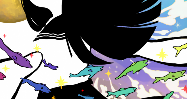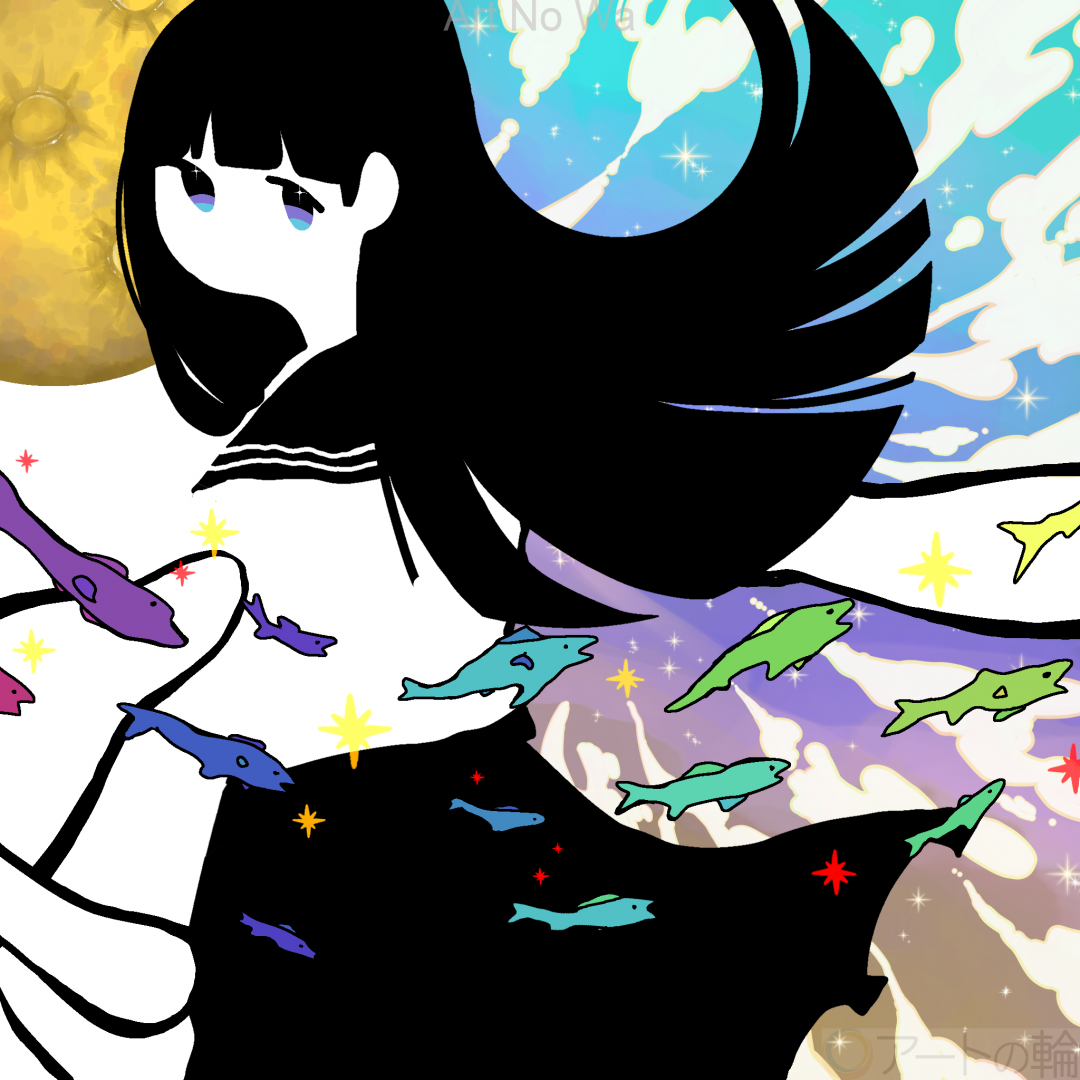 非現実,自然,海,空,現在,緑,水色,青,紫,黒,人物,動物,風景,女性,明るい,たのしい,かわいい,わくわく,2D