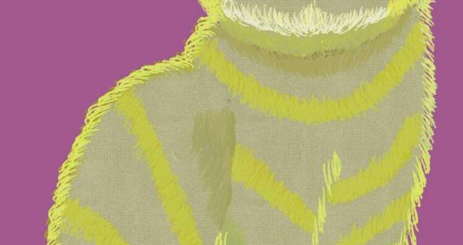 架空のネコを黄色系を使って描こうとしましたが、縞模様など色違いで塗っていたら、どんどんグリーンネコになってしまいました。このネコも、まだまだヤンチャです。障子紙を破るのが大好きです(苦笑)。