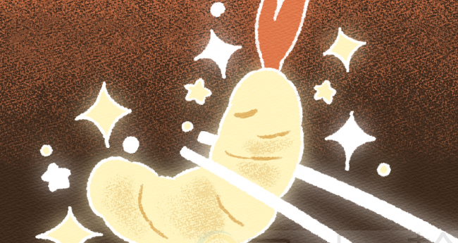揚げたての天ぷらさんが、月の光のように輝いている様子です。