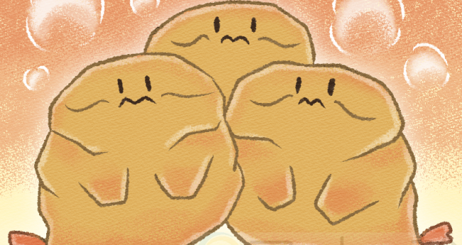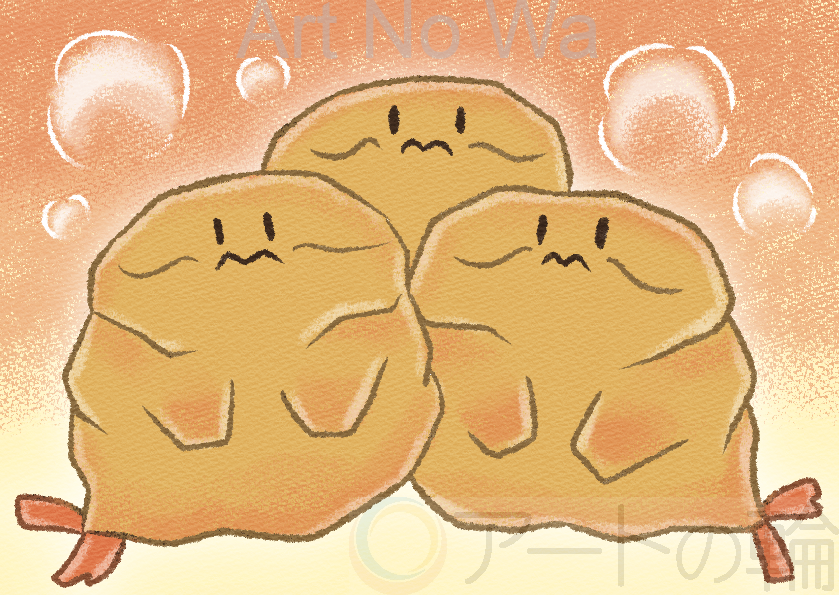 揚げたてのエビフライさんたちが食われるのではとオドオドしている様子です。