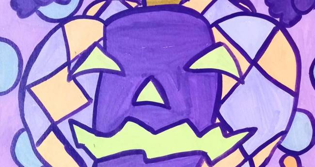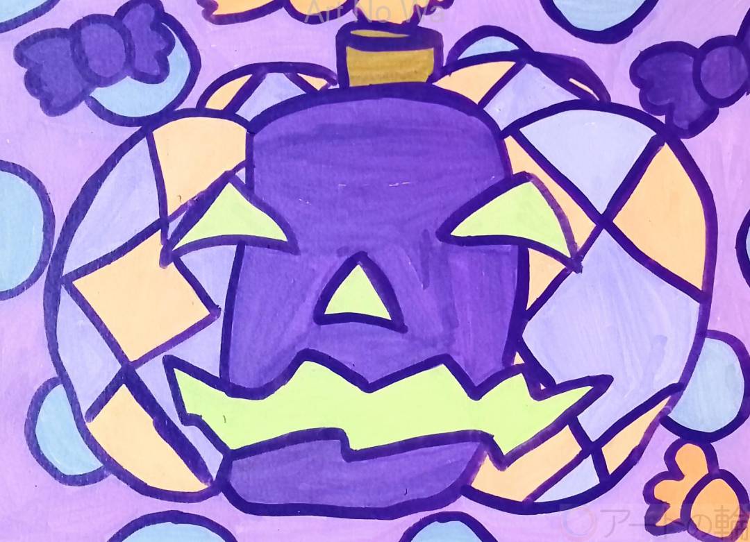 ハロウィンを楽しみにしているニコニコなかぼちゃを描いてました。