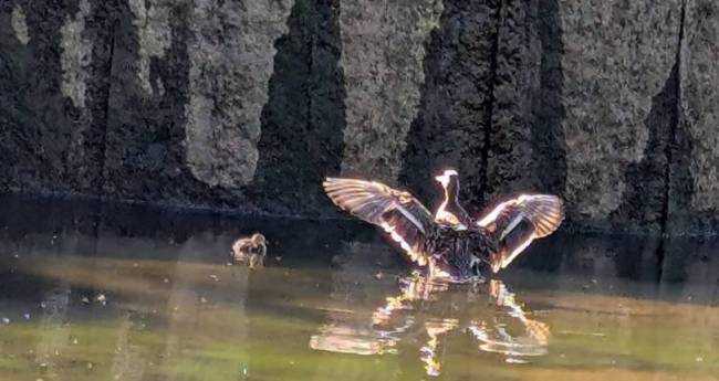 子鴨にはばたいて見せてるように見えたので・・・のタイトルにしてみました