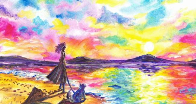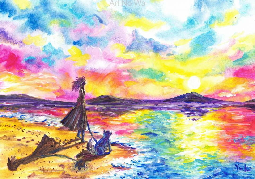 朝の、爽やかな風の中浴びる太陽の輝きは格別だと思います。なくてはならない大切な光。そして、太陽に照らされる全ての生き物を未来へとつないでいければ。そんな想いで描きました。