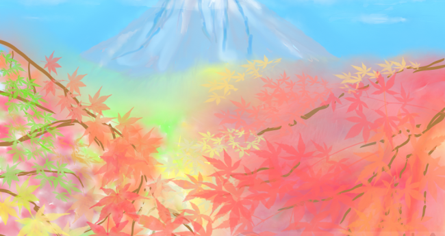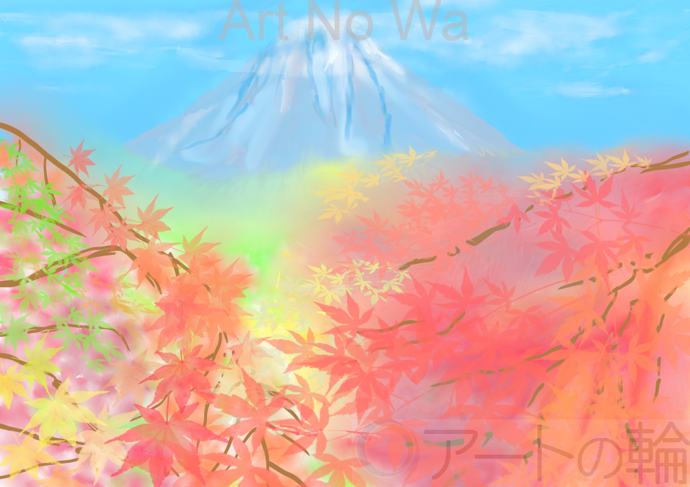 秋晴れの紅葉を富士山とイメージしていました。キラキラした感じです。