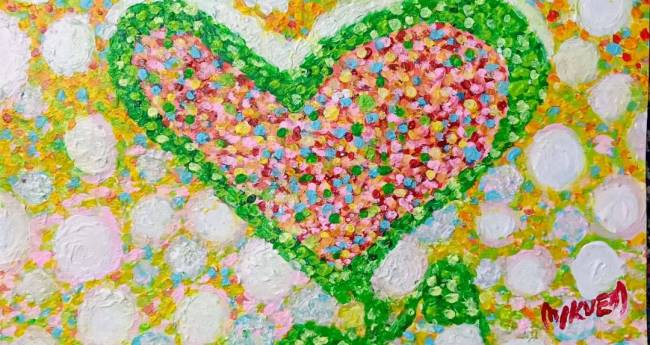 私の育った故郷の北海道の雪の中で、強く咲いて生きる。心の花を描きました。