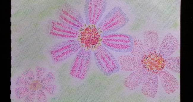 11月6日からちょいと外泊先で描き始め、今日9日お家で描き終えた心に思った秋桜を、イメージイラストにしました。