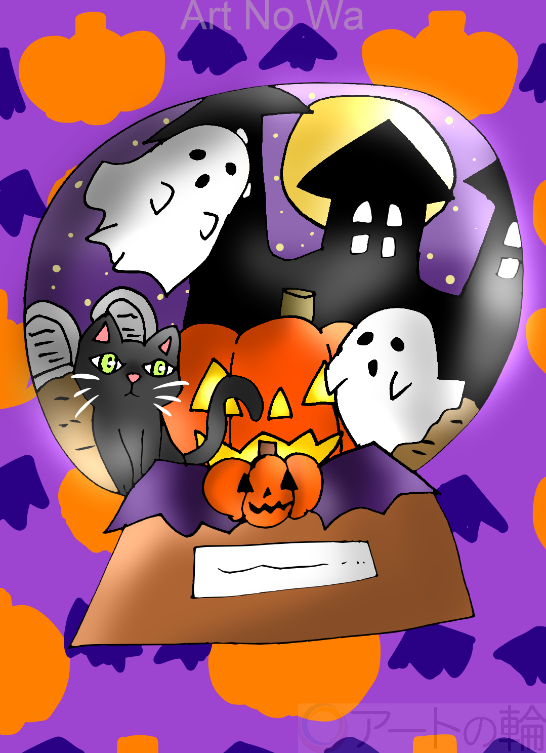 ハロウィンモチーフのスノードームを描いてみました。