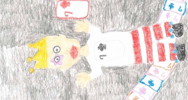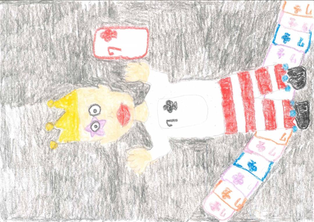 ピエロがトランプをかけぬけるイメージ。イメージするのが楽しかった。