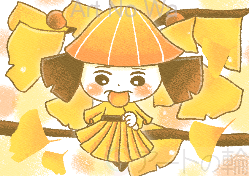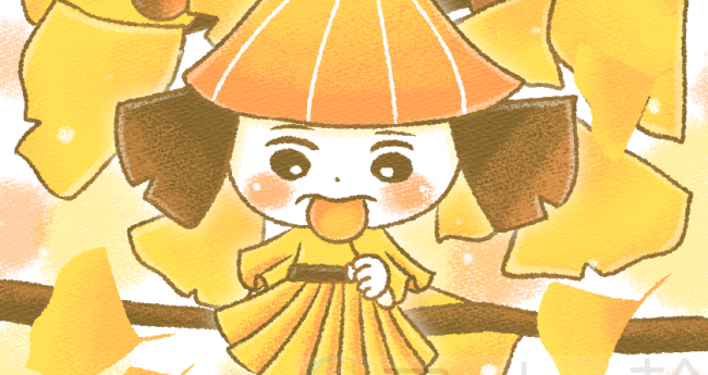 銀杏のおやつをこっそり食べる少女です。