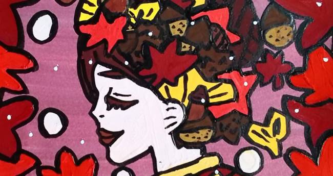 秋の木の実などが頭に乗っている女性を描いてみました。