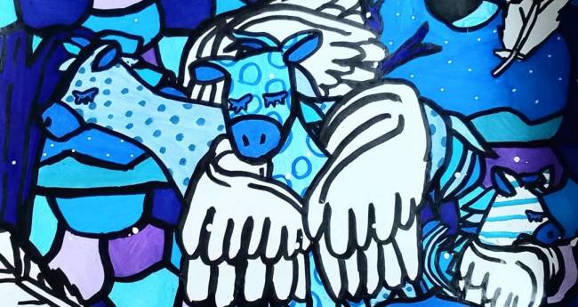 キラキラと輝くクリスタルでできた森でくつろいでいるペガサス達を描いてみました。