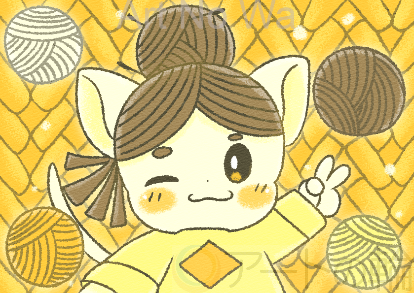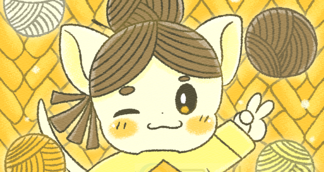ダイヤダイヤのニット服がお似合いの、明るい黄色の毛糸の子です。