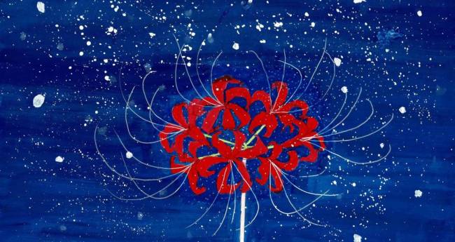 夜空に輝くたくさんの星の中に一本の赤色の彼岸花を描きました。