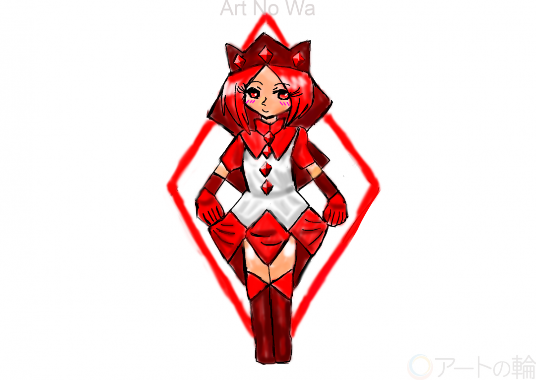 ダイヤモンドから宝石やおしゃれを連想したので、美しい直線とひし形を意識したドレス姿の女王を描きました。